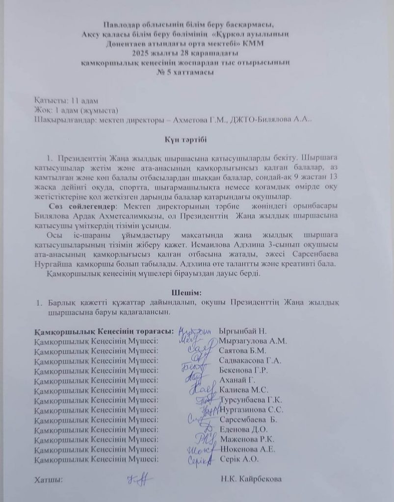 Қамқоршылық кеңесінің жоспардан тыс №5 отырысы