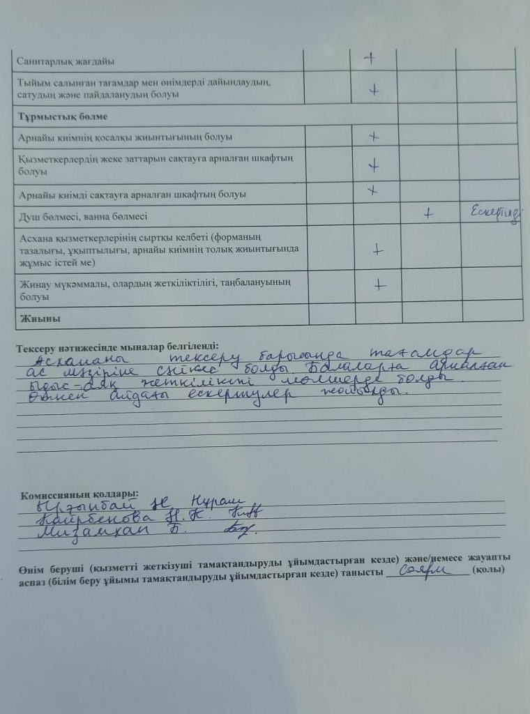 Тамақтану сапасына мониторинг актісі. Қараша айы