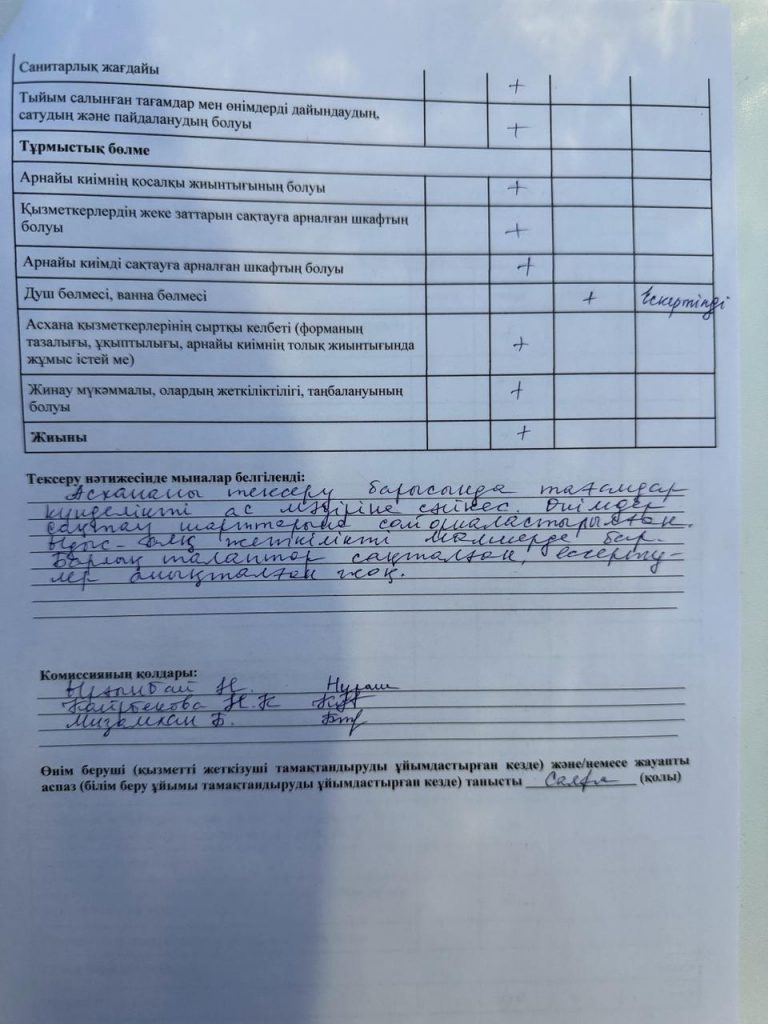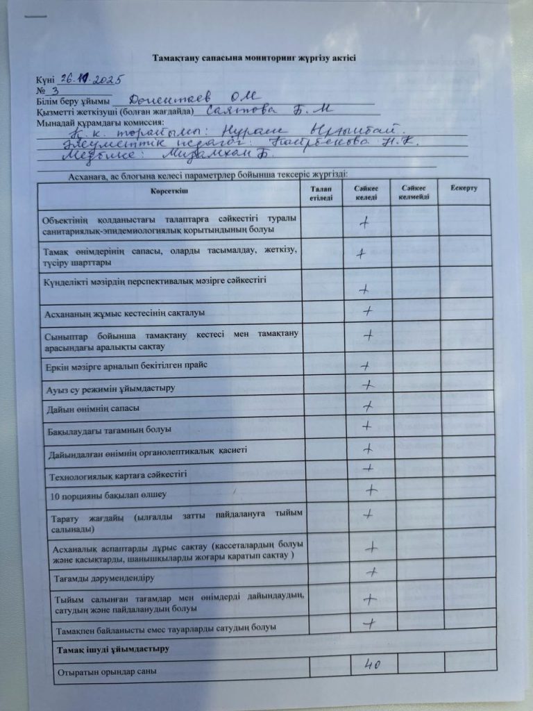 Тамақтану сапасына мониторинг актісі. Қараша айы