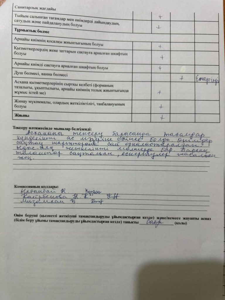Тамақтану сапасына мониторинг актісі. Қараша айы