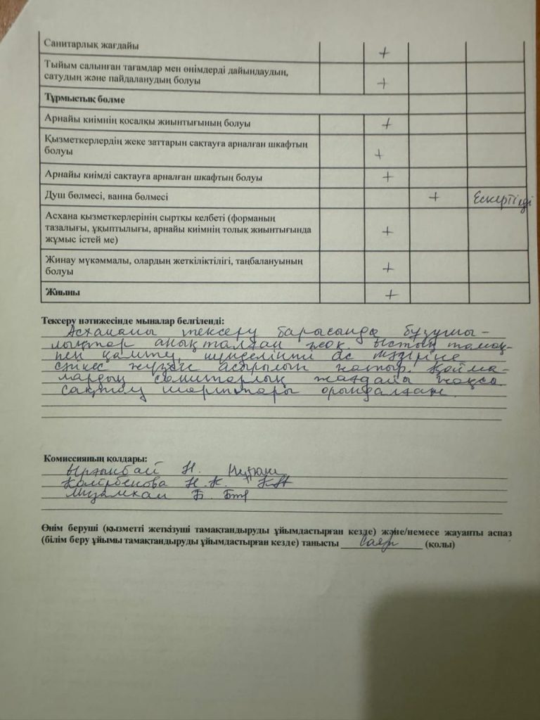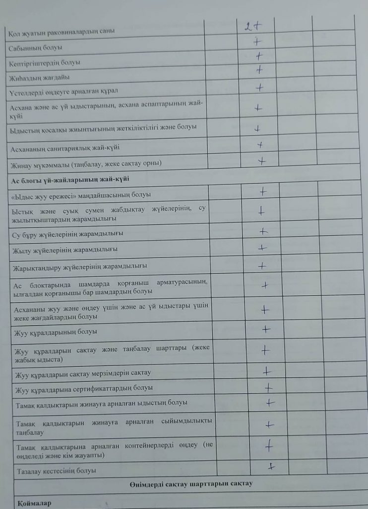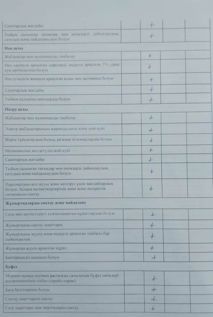 Тамақтану сапасына мониторинг жүргізу актісі. Желтоқсан айы